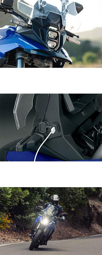LED farovi i LED poziciono svetlo pomažu u stvaranju funkcionalnog izgleda sa potpuno modernim dizajnom karakterističnom za Suzuki i novu eru sofisticiranog avanturističkog stila.