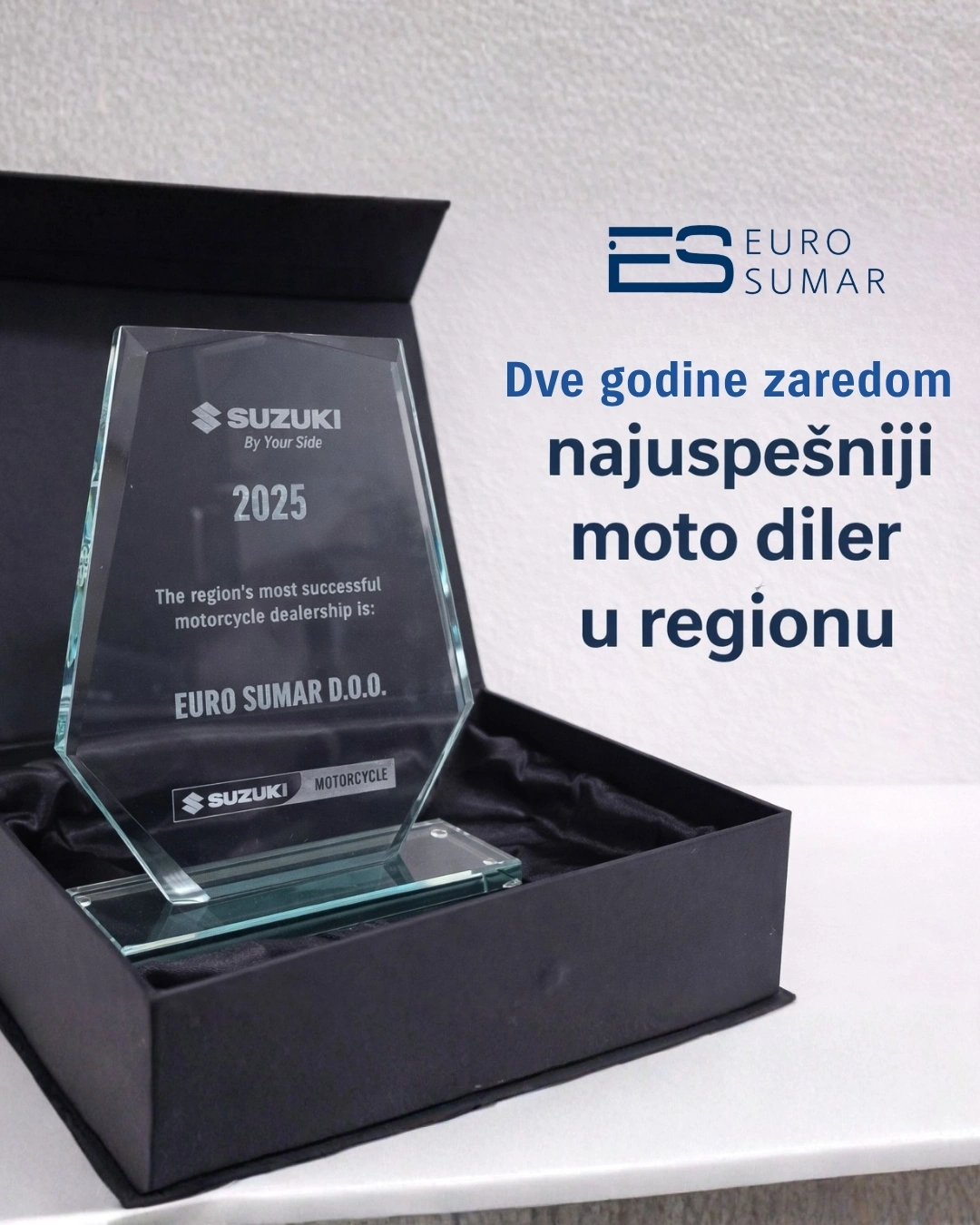 NAZAD NA VESTIKompanija Euro Sumar, drugu godinu zaredom dobila je priznanje za najuspešnijeg Suzuki moto dilera u regionu, koje dodeljuju Suzuki Motor Corporation i Magyar Suzuki Corporation.